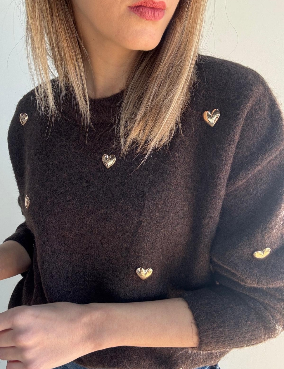 Home MALHAS 🌸 A Nossa Mariana 🤎 A Nossa Mariana 🤎 39,90 € Desconto de %. Compre este produto e ganhe 39 Pontos! Saber mais Comprar Contactar Adicionar à wishlist Camisola de Malha De cor uniforme Onde se destaca os corações dourados salientes Malha Bastante Macia Com um toque incrível Corte jovem Partilhar